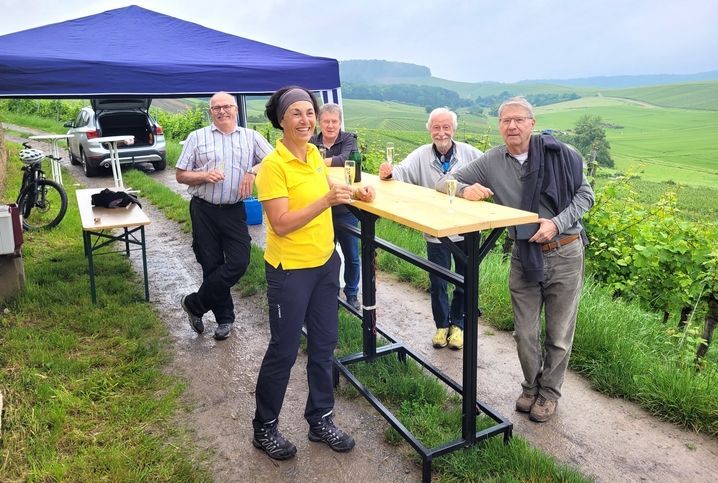 Das von Anke Schäffer liebevoll eingerichtete Weinberghäusle konnte bei einem Gläschen Sekt und einer Schale frischer Erdbeeren bestaunt werden. Auch die in den Weinbergen angebrachten Sinnsprüche und Lebensweisheiten wurden aufmerksam zur Kenntnis genommen und diskutiert.
