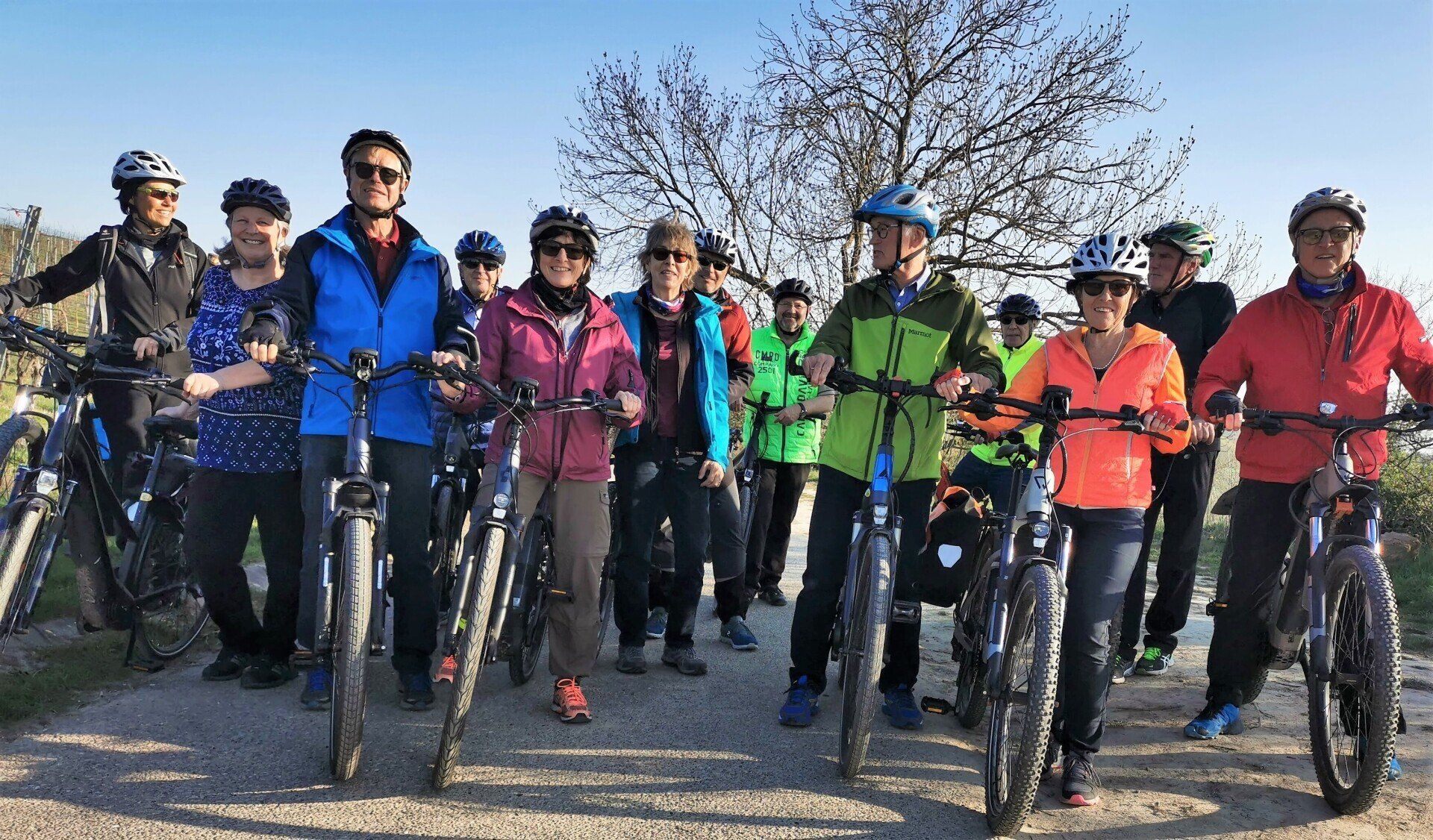 Am Samstag, den 26. März trafen sich 15 gut gelaunte Radlerinnen und Radler bei schönstem Frühlingswetter vor dem Fleiner Rathaus. Ziel war das neu eröffnete Hölderlinmuseum in Lauffen. Mit dem E-Bike ging es über Horkheim entlang des Neckars zunächst zum Klosterhof nach Lauffen.