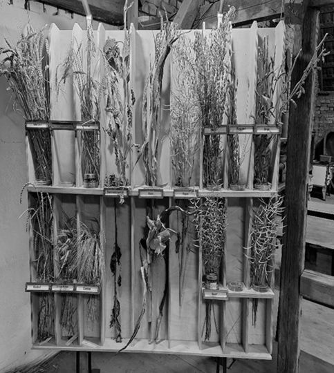 Das Getreidedisplay in unserer Ausstellung der Historischen Scheune des Heimatvereins zeigt die wichtigsten in der Region Heilbronn angebauten Getreide- und Ölsamenpflanzen im direkten Vergleich und gibt dazu Erklärungen und Informationen.