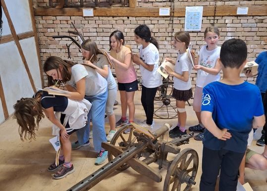 Es war schön zu beobachten, wie interessiert die Schüler den Ausführungen folgten. Ob Pflüge, Transmission oder andere landwirtschaftliche Geräte, das Thema Messen und Wiegen oder auch all die Geräte der Weinwirtschaft und früheren Haushaltsaufgaben, alle Themen fanden große Aufmerksamkeit.