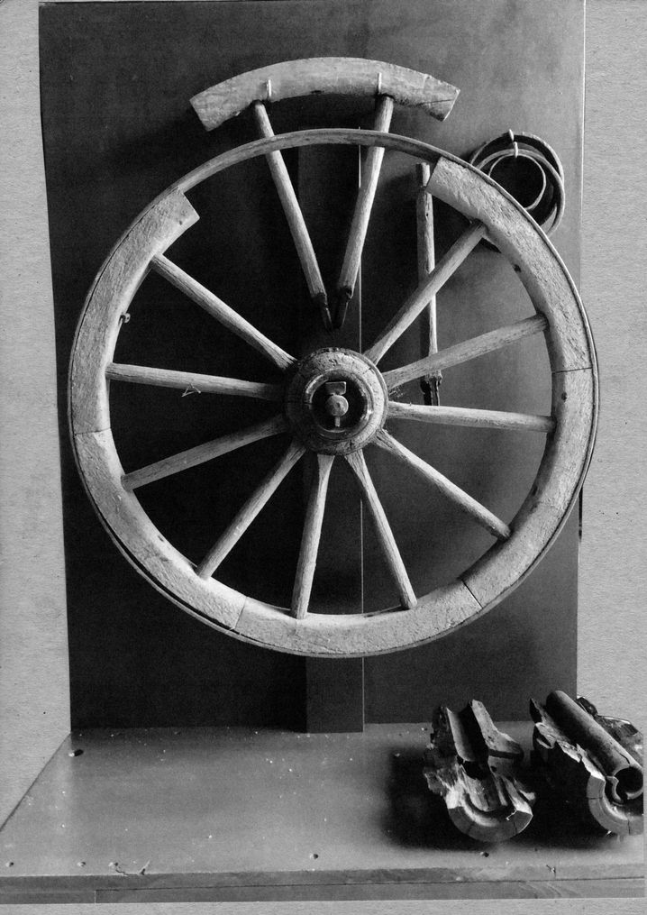 Demgegenüber ist auf dem Bild aus der Ausstellung die Vielzahl der Teile eines hölzernen Wagenrads unschwer zu erkennen. Hölzerne Wagenräder wurden in einer Vielzahl von Größen gefertigt, entsprechend kann die Anzahl der Einzelteile abweichen. Das Prinzip war jedoch immer gleich und schon seit der späten Bronzezeit (Zeitraum von 1300–800 v. Chr.) in weitgehend ähnlicher Form so angewandt.