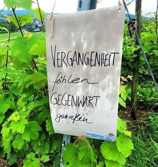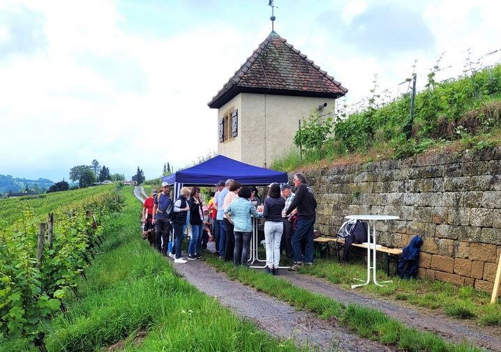 Das von Anke Schäffer liebevoll eingerichtete Weinberghäusle konnte bei einem Gläschen Sekt und einer Schale frischer Erdbeeren bestaunt werden. Auch die in den Weinbergen angebrachten Sinnsprüche und Lebensweisheiten wurden aufmerksam zur Kenntnis genommen und diskutiert.